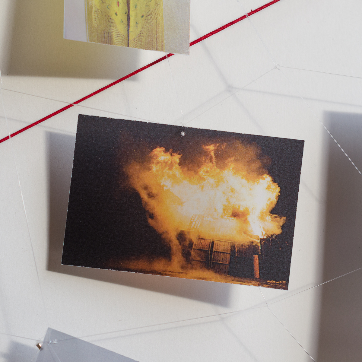Argazkigintza, collagea edo instalazioa bezalako diziplinak erabiliz, egileek eta nik jardueran landu genuen lehenengo ideia berrinterpretatu dugu, esanahi berri bat emateko.